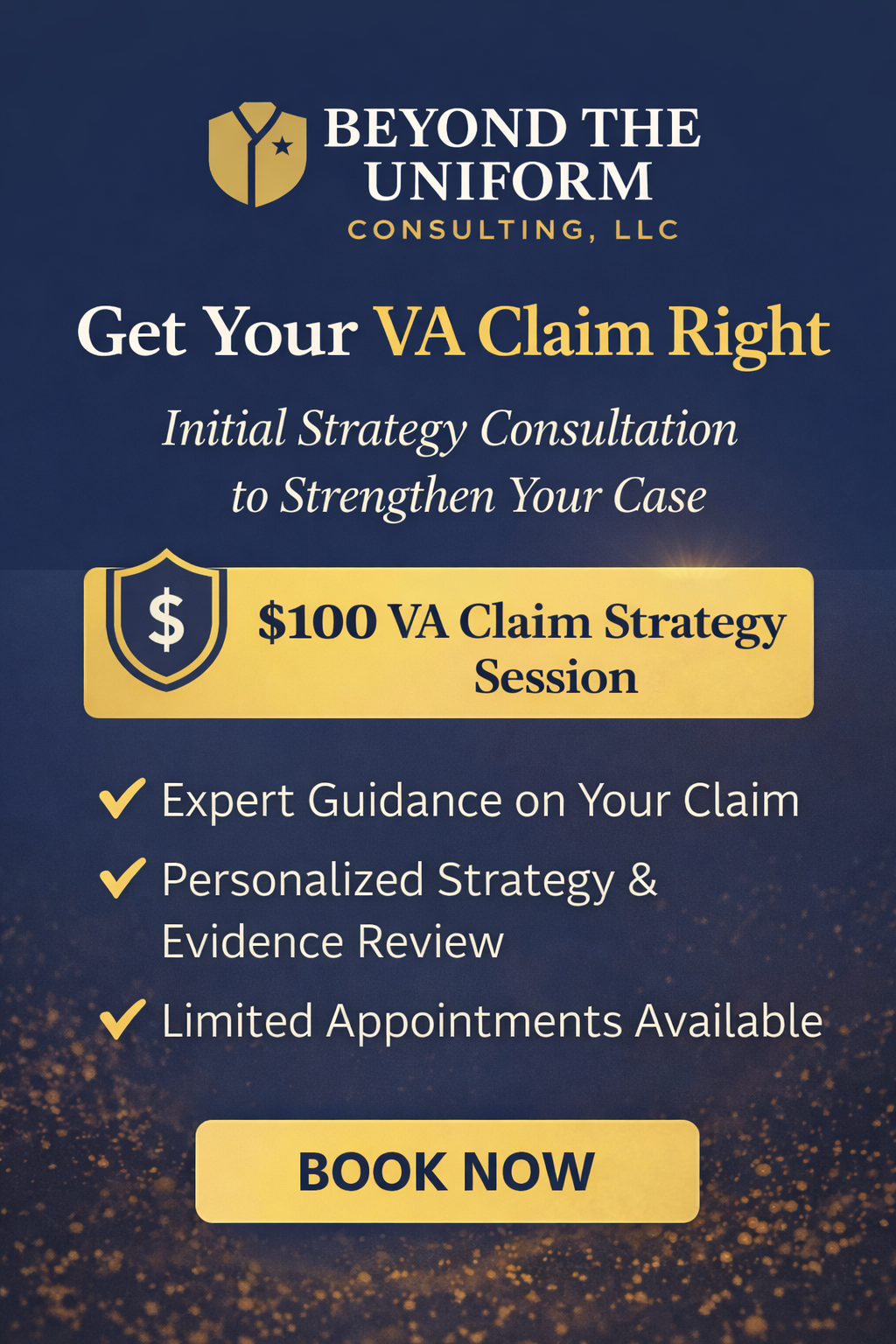 Beyond the Uniform Consulting, LLC provides educational consulting and strategic analysis related to VA benefits. Our services are designed to help clients understand their options, evaluate potential courses of action, and approach the VA process with clarity and confidence.